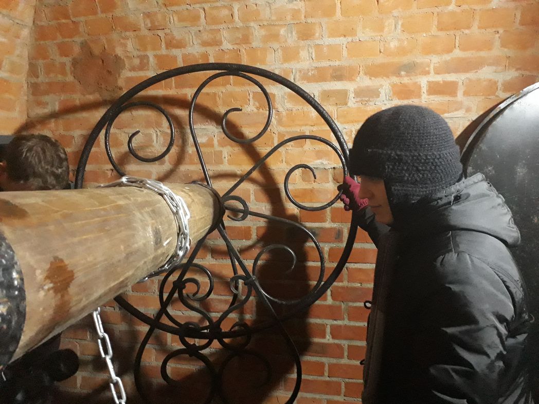Матушка Анастасия показывает нам старую кирпичную кладку. Там, где это было возможно, реставраторы постарались сохранить ее. Кладка значительно отличается от современной.