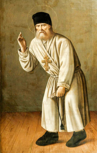 В витрине хранятся его вещи ‒ все, что после него земного осталось. Епитрахиль его, поручи, его лапотки, его полумантия, в которой он ходил постоянно, Псалтирь его, которую он всегда в мешочке носил за спиной с другими книгами Священного Писания, топорик, на который он опирался и которым работал... Какое-то особое тонкое благоухание исходит от этих вещей, и когда, бывало, положишь голову, зароешься лицом в какой-нибудь полушубок или мантию, так и кажется тебе, что ласковый, старческий голос шепчет над ухом: «Ну что, радость моя? Зачем пришел к убогому Серафиму?»