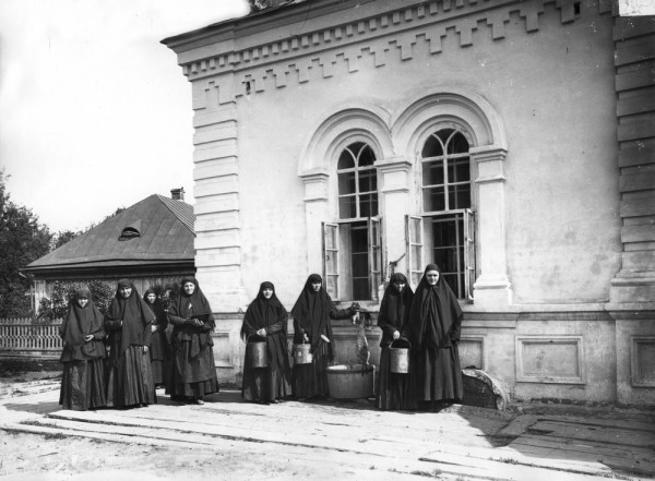 Мы прошли по монастырю. Это был ряд небольших деревянных домов, флигелей, разбросанных без особого плана и строившихся в том или другом направлении, вероятно, по желанию тех, кто здесь селился. Цветники у построек, цветы на подоконниках, щепетильная чистота в келиях, начиная с первой ступеньки крыльца, ‒ все говорило о женской руке, заботящейся о своем жилище. Тут же стояли корпуса с различными мастерскими, где та же рука беспрерывным трудом зарабатывала себе право оставаться в этом тихом приюте. Нам показали обширную живописную мастерскую, в которой, помимо писания икон, монахини практиковались и в копировании известных картин. Большое здание, просторное. Комнат много, во всех работают монастырские девушки-юницы. И в этой, и в той комнате пишут образки на камне, для печатанья, и на дощечках. Сюжеты иконописи – из жития преподобного, образ «Умиления».