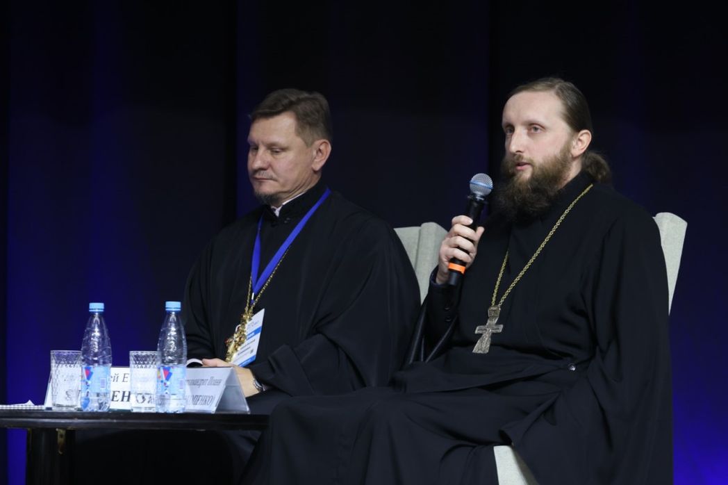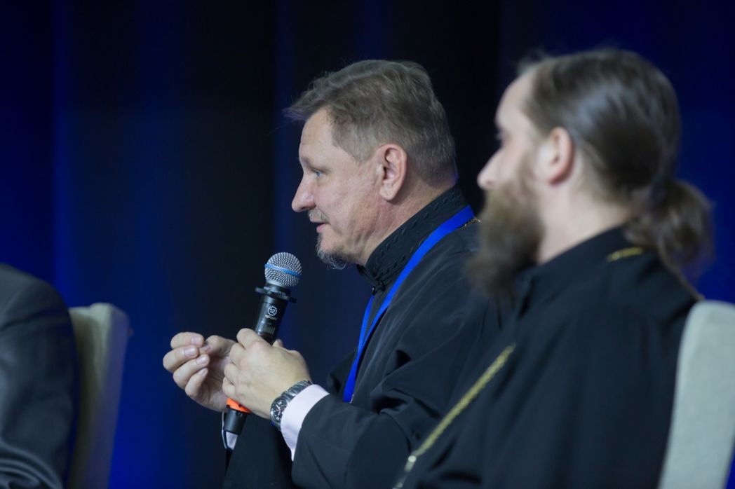 Участие в дискуссии принял также клирик Бердянской епархии, протоиерей Евгений Клименко. Он рассказал о переходе оставленной украинским архиереем епархии в подчинение Русской Православной Церкви. Священнослужителям, каких бы ни придерживались они взглядов, ничего не оставалось, как написать письмо с подписями Святейшему Патриарху и попросить принять Бердянскую епархию под свой омофор. При этом покинуло епархию всего 5 священнослужителей, а 96 осталось.