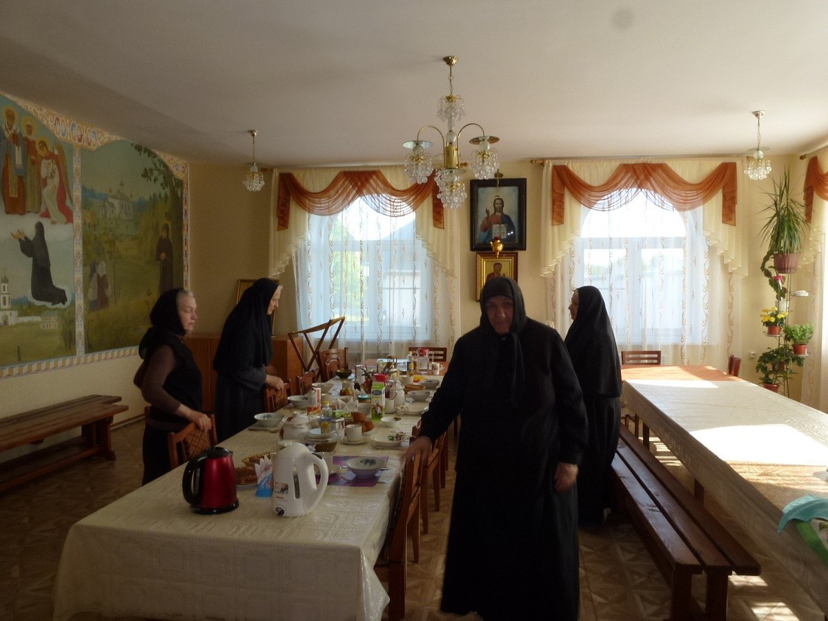 Послушания у нас простые: кухонное, церковное, клиросное, летом – огороды. Мечтаем создать мастерские: мозаику, керамическую, иконописную, швейную (вышивку). Пока «не имам человеков», чтобы это исполнить. На кухне готовит еду в основном три дня одна сестра, затем другая, таких сестер четыре. Две сестры на трапезе (накрывают, моют посуду) – одна неделю, затем другая. Также церковничают попеременно две-три сестры. На клиросе читают все по очереди, поют обученные три-четыре сестры, составляем расписание череды на все послушания.