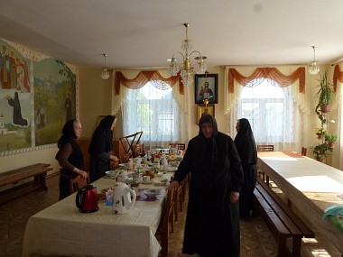 За трапезой мы читаем, я комментирую или делаю какие-то замечания в соответствии с ситуациями, происходящими в нашей жизни. В кельях сестры живут по одной, кроме новоначальных. Келейным правилом является чтение псалтири и святоотеческой литературы. Пока еще маловата библиотека, надеюсь, постепенно расширится.