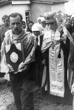 «Не знаю кто, но подталкивают меня сзади к двери и предлагают войти в комнату. Захожу и вижу: стоит посреди комнаты стол, и лежит на нем отец Серафим в облачении. Вереница священнослужителей по очереди отдает ему целование. Перед тем, как подойти, помню, подумал: как же я буду целовать батюшку, ведь от него наверняка пахнет тлением. Но тут же решаю – все равно подойду. Приближаюсь. Передо мной остается один человек. И вдруг вижу, "воздух" вокруг лица батюшки зашевелился, и он, уже освободившийся от него, опершись на правый локоть, беседует с этим человеком. Помню лишь, что он говорил с ним об Императоре Николае II. Что именно говорили – совершенно не помню. И вот подхожу я. Не знаю почему, говорю отцу Серафиму: "Батюшка, я плохо служу". А он ласково прикасается рукой к моему плечу и говорит: "Нет-нет". Я продолжаю: "Батюшка, я такой грешник". А он снова: "Нет-нет". А взгляд такой детский, переполненный любовью. И тут я физически ощущаю запах благоухания, исходящего от отца Серафима. И я понял, что это был ответ на мои маловерные мысли, которые посетили меня вначале. И что интересно, когда я рассказал об этом сновидении в подробностях одному из очень близких о.Серафиму людей, – протоиерею Валерию Бояринцеву, он тут же с радостной улыбкой сказал мне: "Именно так батюшка и делал" (имея в виду его ласковое прикосновение к плечу собеседника). Но ведь я батюшку при жизни не знал и никак не мог выдумать такой подробности».