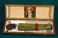 - две иконы с частицами мощей преподобного Серафима, четки, часть мантии и камня, на котором старец молился.